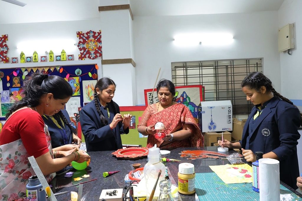 Play areas comprise a basement hall, an indoor mini-gym, a multi-purpose hall for group performances, an open, paved courtyard for yoga and dance, senior art, pottery & design room, senior dance & music room besides a basketball court, badminton courts, table tennis tables and an open play- ground.